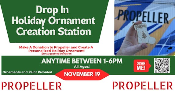 Donate to a great cause and create your own personalized holiday ornament. Propeller will provide paint and a laser-engraved ornament for you to decorate and…